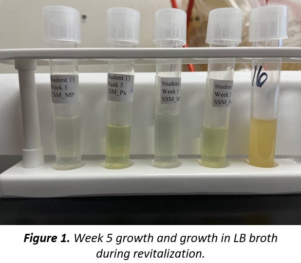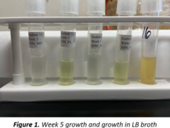 Of the two tubes (CSM_Px and SSM_Px) that were attempted to be revitalized in LB broth, only the one with CSM_Px showed growth. This was possibly due to Paraoxon ethyl degradation over time or spontaneous hydrolysis. Once plated, the culture that grew in LB broth had a CFU of 6000000 colonies that could hydrolyze the pesticide. Overall, a majority of the microbes collected by the class only digested the Paraoxon ethyl. This could have been because of the type of soil collected or any other unaccounted external factor that could have affected the results. The incubation period could have also affected microbial metabolization, especially if microbes favor specific incubation parameters.